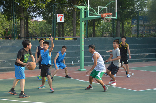 四场比赛同时拉开序幕:车辆工程专业间比赛尤为激烈,车辆毕业生队伍凭借丰富的比赛经验以及精湛的突破技术占据着比赛的主动,低年级代表队亦不甘示弱,凭借默契的配合咬住比分,将差距一步步拉小;另一边,物流工程专业间的比赛也如火如荼地进行着,两支队伍实力不相上下,精妙的传球以及闪电般的快攻将比赛一度推向高潮。其他专业间的比赛也是精彩纷呈,双方队员你追我赶,互不相让,汗水挥洒在赛场上,青春与激情让比赛一再升温。正是夕阳西下,篮球场上弥漫着别样的豪情,传球,突破,回防,潇洒矫健的身姿,精准无二的投篮,毕业生们用这样的方式向大学四年的青春作了精彩的告别,而奋斗拼搏的火炬也在“友谊第一,比赛第二”的原则下,一级一级地传递了下去。