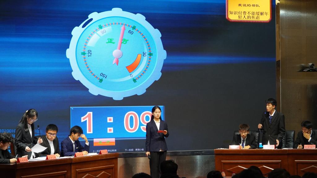 经过初赛的激烈角逐,共有4支队伍晋级决赛。双方辩友针锋相对、你来我往却又不失风度,侃侃而谈,赢得台下观众接连不断的掌声。辩手们各有特色,他们或从容不迫、或风趣幽默,将古往今来的例子集于同一时空,以缜密的逻辑将问题分析彻底,探究问题本质。其中,最为精彩的是自由辩论环节和总结陈词环节。自由辩论环节,现场气氛在双方的争锋相对、步步紧逼中迅速升温,比赛进入了白热化阶段。在这你问我答的环节中,双方辩手都使出了浑身解数,故设圈套,企图让对方落入陷阱。在总结陈词环节中,双方辩友以清晰的思路和巧妙的陈词总结了问题的本质,引发了台下观众的深入思考。最后,评委依次对本场比赛做出点评,肯定了双方辩手实力的同时也对攻辩过程中出现的技术性漏洞予以指出并提出建议。