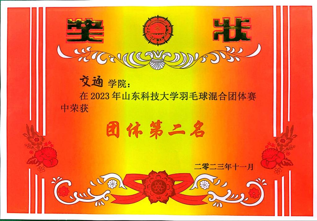 本学期学院各项体育运动再创佳绩,在bv伟德国际体育官方网站第十七届学生乒乓球比赛中荣获女子团体第二名,bv伟德国际体育官方网站羽毛球混合团体赛中荣获团体第二名,bv伟德国际体育官方网站2020-3班徐钰晟在2023年山东省大学生田径锦标赛中荣获男子甲组400米冠军,并打破学校记录。下一步,交通学子将继续发扬拼搏精神,在学习工作中再接再厉,争创更加优异的成绩。