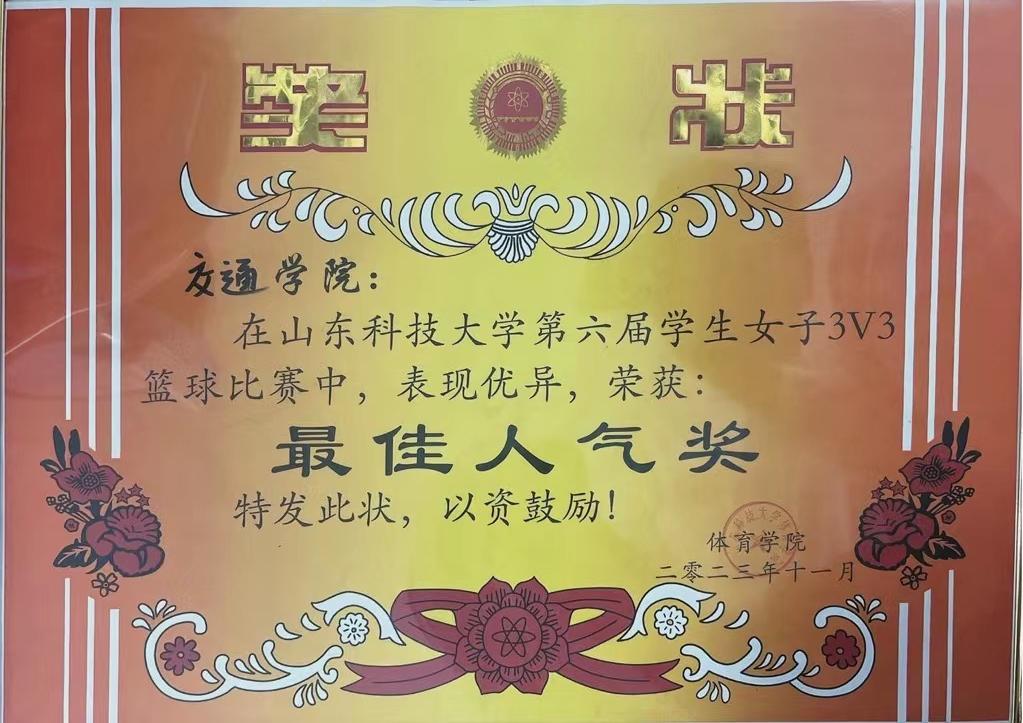 经过激烈角逐,bv伟德国际体育官方网站荣获学校第六届学生女子3V3篮球赛冠军和最佳人气奖。