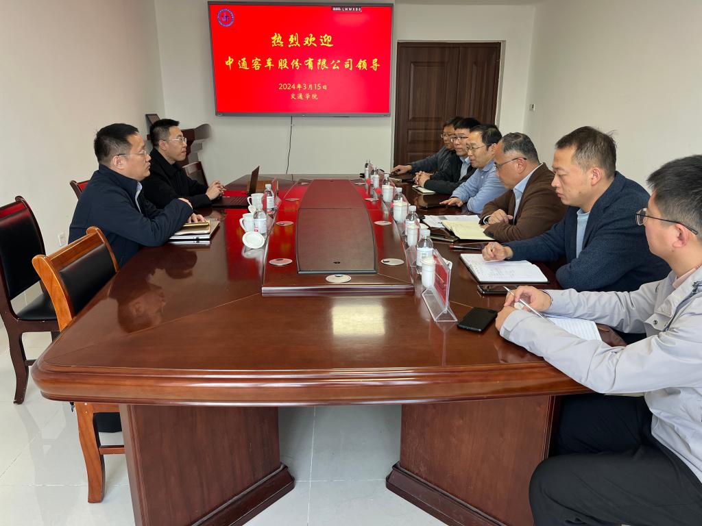 3月15日,中通客车股份有限公司副总经理李晨、研究院院长齐洪磊一行到访bv伟德国际体育官方网站,学院院长辛嵩、副院长徐伟、运载工程系党支部书记王强、系主任杜现斌、副教授朱庆林等参加座谈交流。