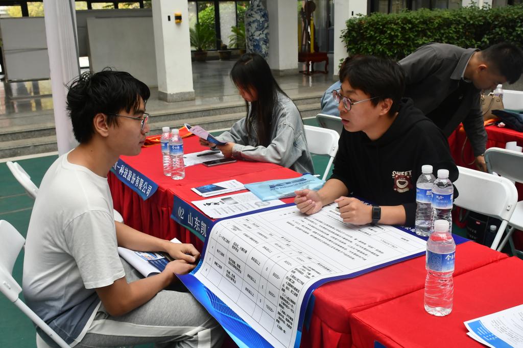 本次招聘会有豪迈集团、德州科技职业学院、山东华宇工学院、人民电器集团山东有限公司、泰山集团、新汶矿业、魏桥创业集团、滨化集团等80家知名企事业单位参会,涵盖本硕博学历层次,提供了众多岗位,覆盖了我校诸多专业。招聘会现场,各招聘展位前,前来咨询的学生络绎不绝,各招聘单位对岗位细则、学历要求、招聘人数等一一进行说明。