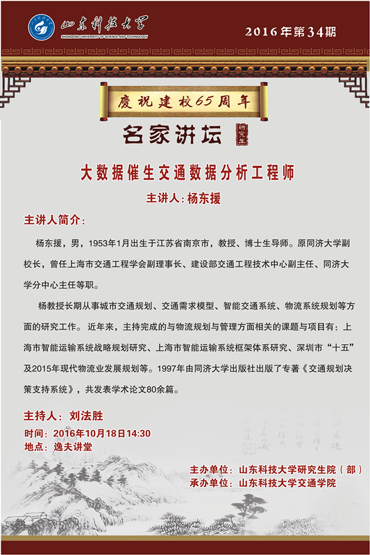 [学院动态]庆祝建校65周年之“名家讲坛”知名专家报告会