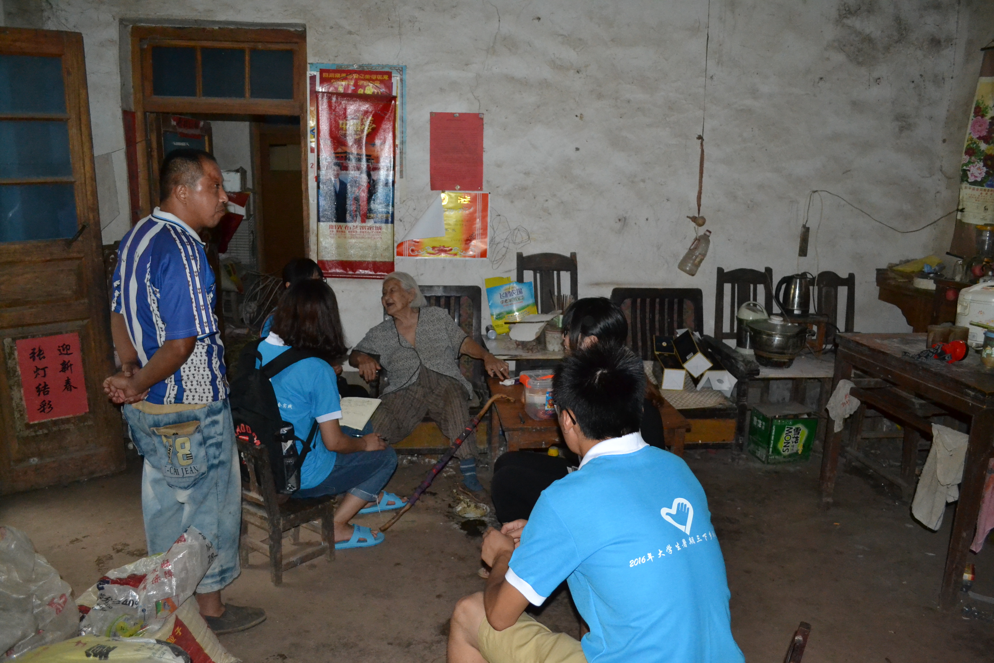 前期,小分队成员们通过现场考察,对村里的地形、耕地、水利等情况作了初步了解,并通过与村支书的交流着重了解到村内每家住户的基本情况。活动当天,团队成员分为四组,在各自分属的任务区域内,徒步进行了耐心细致的走访。初秋的天气依然高温不退,队员们顶着炎炎烈日,与每家每户的村民亲切交谈,调查了解情况,并作了详细记录。在走访到一些孤寡、残弱、失独、高龄等特殊困难家庭,团队成员把之前利用有限的实践经费所购买的物质,为他们送去了鸡蛋、大米等慰问品,传递了爱心和温暖。走访过程中,突如其来的大雨也没能打消队员们的积极性,最终团队成员圆满完成全村走访的任务。