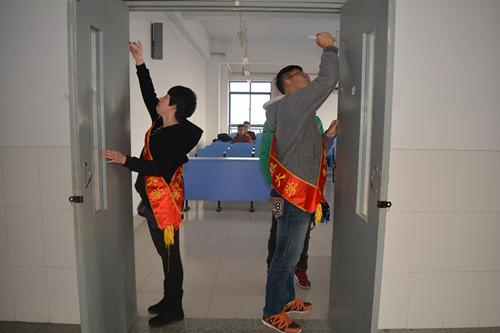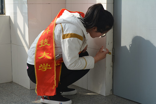 此次活动以“教学楼消噪,还教室琅琅书声”为主题,三个学院分别就自己负责的教学楼区域展开消噪服务。活动中,志愿者细致查看教室房门的生锈情况,用针管将润滑油注入噪音产生部位并认真检查,他们轻声慢步,将活动噪音减到最小,避免对学习的同学造成影响。从一楼到五楼,志愿者们耐心维护、高效合作,随着润滑油注入每一扇门,教学楼中开关门的噪音逐渐消失,同学们拥有了更宁静的学习氛围。