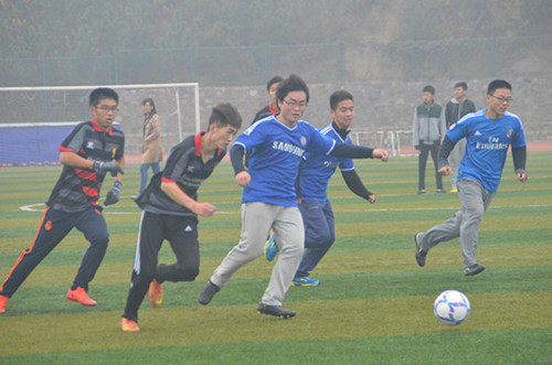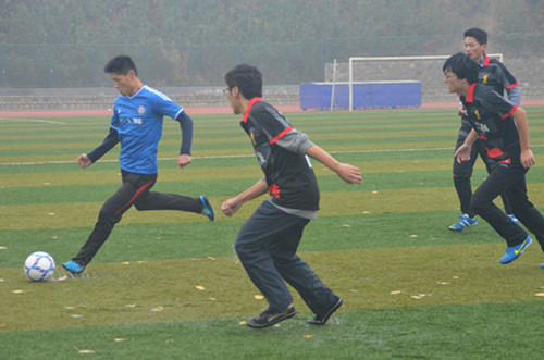 11月14日,bv伟德国际体育官方网站第一届专业间足球赛决赛暨闭幕式在风雨操场举行。学院学生会副主席高苏、孔征宇、刘少龙及校足球协会裁判代表李飞出席闭幕式并观看比赛。