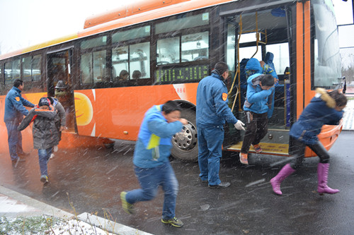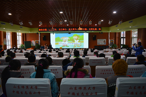 本次活动以“大手牵小手,交通安全伴我成长”为主题。活动伊始,服务队成员以同学们熟悉的《西游记》动画为背景进行改编,生动的情节引起了孩子们对步行安全的关注;随后的交通知识竞答吸引了在场同学的广泛参与,孩子们在回答问题的同时大大提高了交通安全意识;接着,青岛公交集团隧道二队代表结合动画对公交车火灾的应对措施和逃生方法作了详细讲解;最后,同学们在工作人员的协助下进行公交车火灾应急逃生演练,演练时天空飘起了雪花,但孩子们学习热情依旧,大家根据指导安全有序地撤离“火灾”现场,活动收到了良好效果。