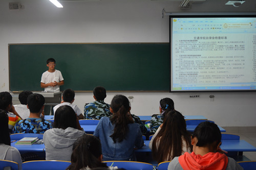 九月的山科,每一丝风都诉说着大学的美好,每一处风景都因新生的到来而散发朝气。为帮助新生尽快融入校园,适应学习与生活,9月14至16日,bv伟德国际体育官方网站自律会主任王亚浩、“行远科技创新队”负责人齐薪玉及学生干部代表徐朝宁分别就宿舍管理、科技创新和“三结合”评定方面为新生作讲解。