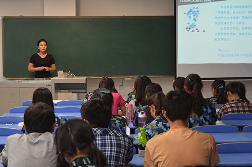徐朝宁针对“三结合”评比涉及的“德育”“智育”“体育”三个方面,通过具体的数字,向新生做了详尽介绍。她叮嘱同学们把学习放在首位,积极参加课外活动,做到德智体美全面发展,同时鼓励他们以饱满的热情,投入到今后的大学生活。