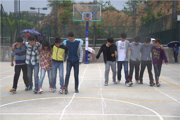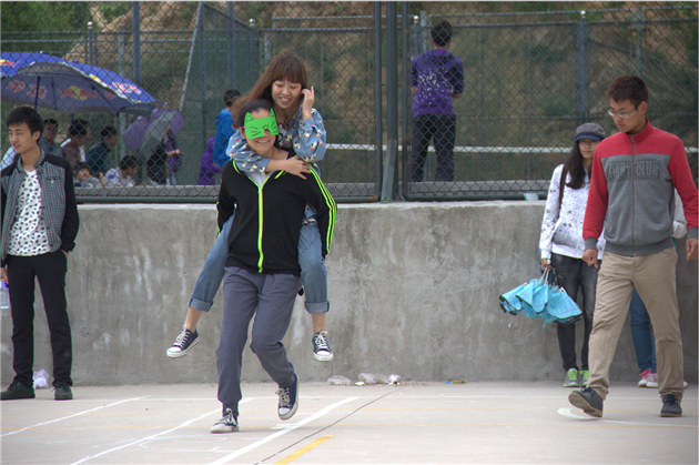 活动以“与阳光作伴 与健康成长”为主题,共分并肩作战、五人六足、摸爬滚打三个环节。上午9时许,各学院代表队纷纷亮出参赛口号,比赛正式拉开帷幕。“并肩作战”环节考验队员间的信任度和配合度,要求队员在被蒙住眼睛的状态下背起同伴,在同伴的指引下穿越障碍,到达终点。现场观众情不自禁地参与其中,大声地为选手们提示、呐喊,趣味十足。随后进行的“五人六足”环节,队员们手挽手、肩并肩,在响亮的口号“一二一二”和整齐稳健的步伐中充分展现着青春蓬勃的朝气和团结协作的精神,校心健联代表队一鼓作气,以零失误的成绩夺得本环节第一名。稀稀沥沥的小雨没有熄灭队员们的热情,“摸爬滚打”环节中的立定跳远、蹲起、单腿蹦等体力上的比拼更是掀起了比赛的高潮,大家在竞技中培养默契,收获喜悦。