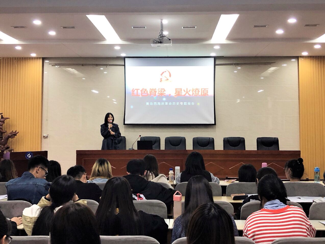 为深入贯彻落实习近平总书记关于进行党史国史教育、“传承红色基因”的重要指示精神,11月6日下午,青岛西海岸新区工委党校蒋玲玲于J11报告厅为bv伟德国际体育官方网站与化工学院入党积极分子授课。本次授课主题为“红色脊梁,星火燎原”。