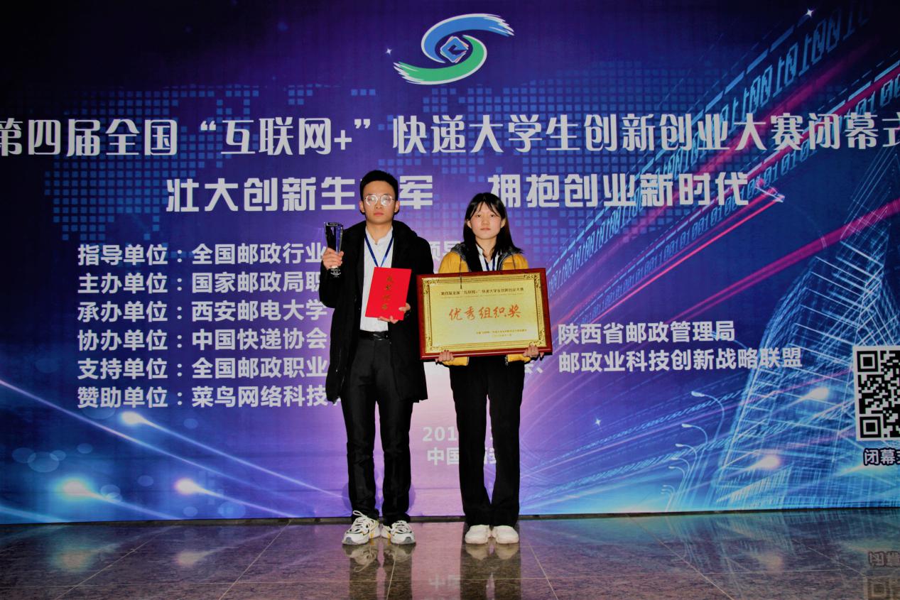 近日,第四届全国“互联网+”快递大学生创新创业大赛全国总决赛第二轮路演在陕西西安落下帷幕。bv伟德国际体育官方网站学生作品荣获全国银奖一项、全国铜奖三项,国家邮政局副局长杨春光出席本次颁奖典礼并为我院学子颁奖。