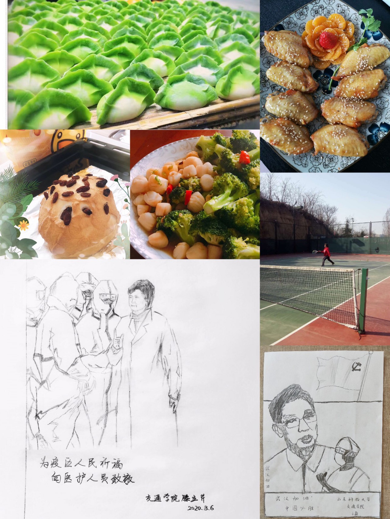 生活是人们一生都要追求的大学问。在这个特殊时期,女教职工们更是身体力行,以健康向上的生活态度为学生们树立榜样。在兢兢业业做好本职工作之余,她们精心准备菜肴,为家庭增添幸福之味;以身作则,为增强免疫力积极锻炼身体;素铅作画,向一线抗“疫”工作者致敬。