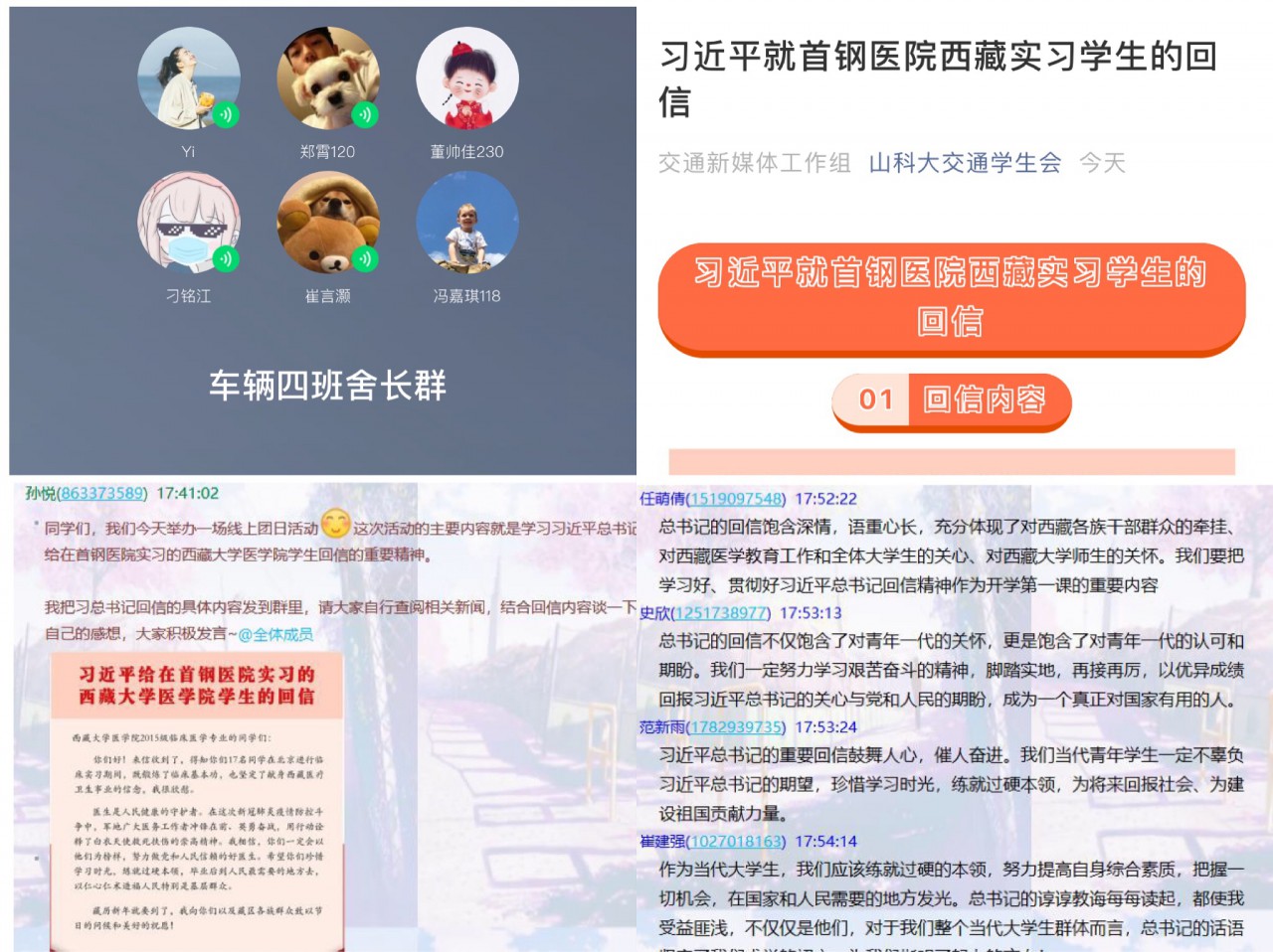 “总书记的回信每每读起,都使我受益匪浅。不仅仅是在首钢医院实习的医学生们,对于我们整个当代大学生群体而言,总书记的话语都进一步为我们指明了努力的方向,坚定了我们求学报国的初心。我们将学习好、贯彻好习近平总书记回信精神,努力把自己培养为社会主义事业合格建设者和可靠接班人,争取早日为社会主义建设贡献自己一份力量!”