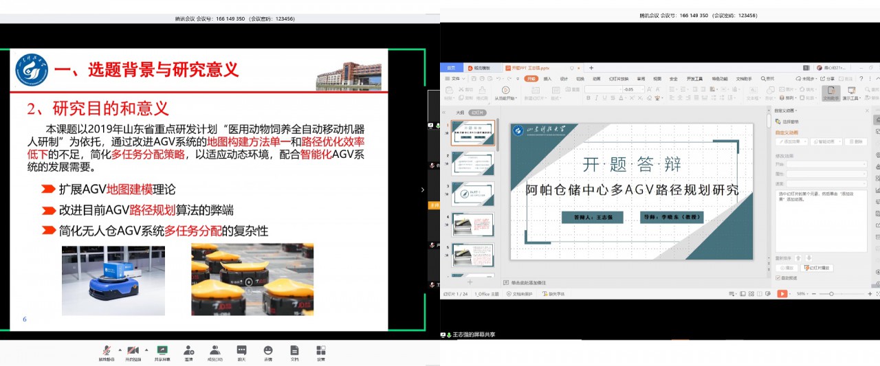 22名研究生分为物流装备与控制、物流系统规划与设计和物流信息技术三个研究方向,各研究生在前期论证的基础上结合我国物流行业快速发展的需求,通过幻灯片的形式对所选课题进行了应用背景分析、研究现状阐述,梳理了自己的研究内容并汇报了后续工作安排。各评委对研究生的开题报告和主要研究内容进行了点评指导,确保研究生毕业论文开题内容的高质量和后续研究的顺利进行。