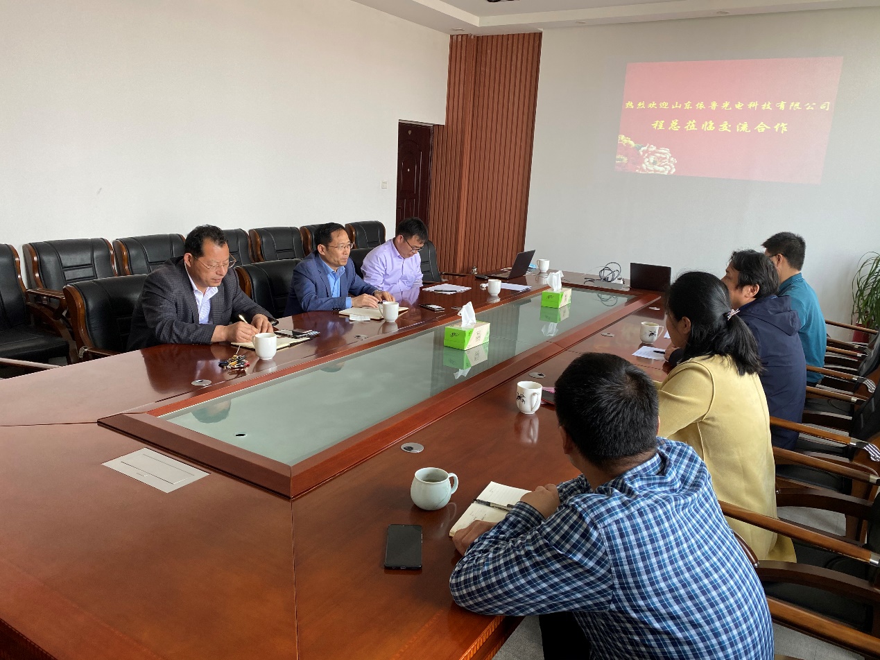 5月16日上午,山东依鲁光电科技有限公司董事长程坚一行到访,与bv伟德国际体育官方网站进行项目合作洽谈。bv伟德国际体育官方网站院长辛嵩、院长助理刘海青、bv伟德国际体育官方网站系主任王建春、赵刚等人参与座谈。