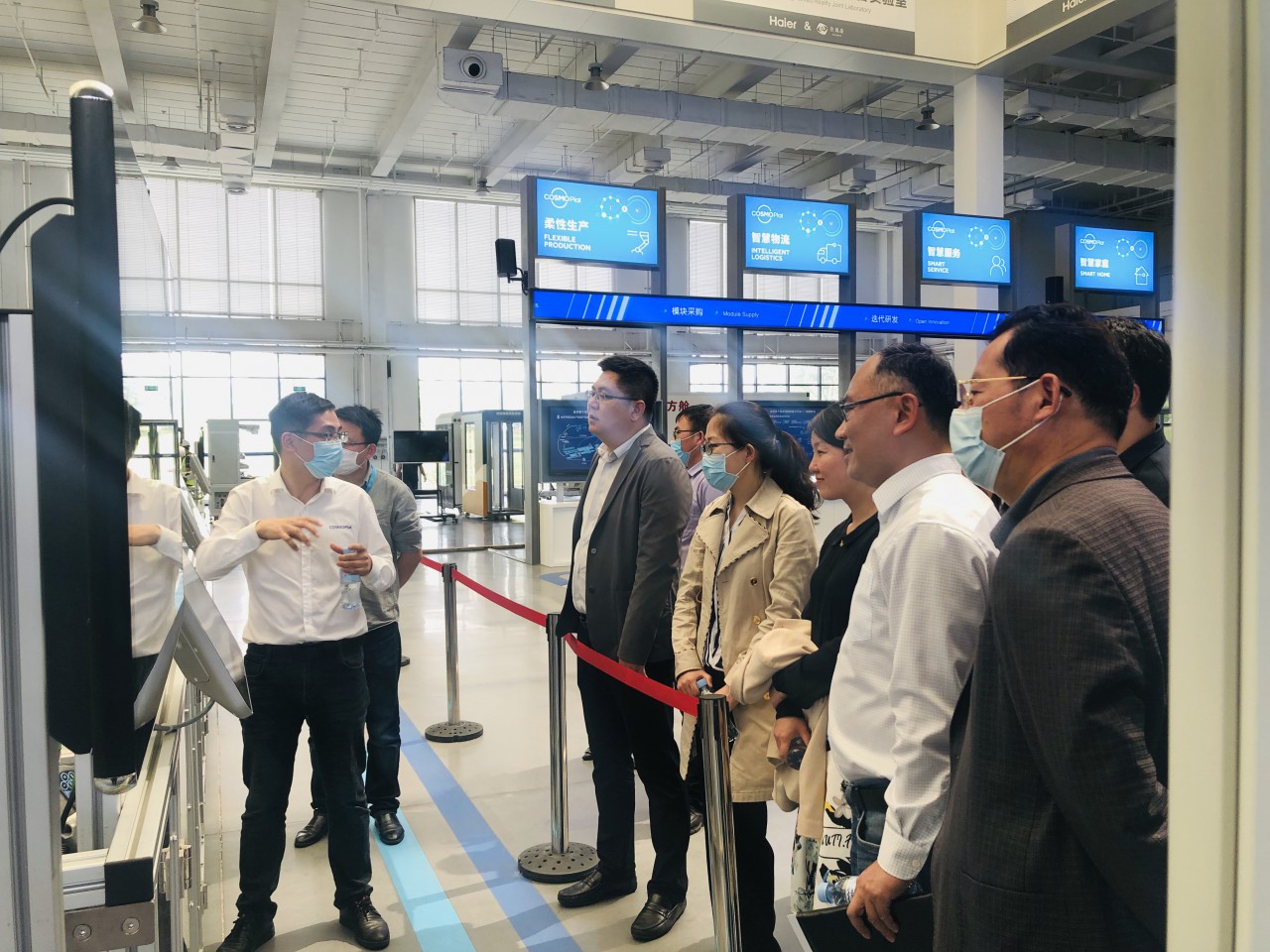 在高尚的带领下,一行人参观了卡奥斯(COSMOPlat)平台,卡奥斯(COSMOPlat)是由海尔自主研发的工业互联网平台,面向全球、全行业提供用户全流程参与的大规模定制转型服务解决方案,实现跨行业、跨领域生态赋能。目前平台已汇聚3.4亿用户、4.3万家企业和390多万家生态资源,位居工信部十大跨行业跨领域工业互联网平台名单首位。