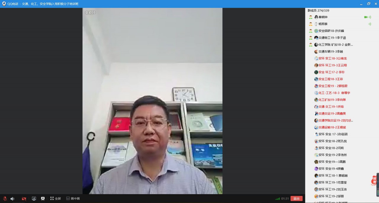 6月1日,校党委宣传部副部长秦晓钟为bv伟德国际体育官方网站、化工学院及安全学院入党积极分子进行线上授课。本次授课主题为“中国共产党的诞生和发展”。