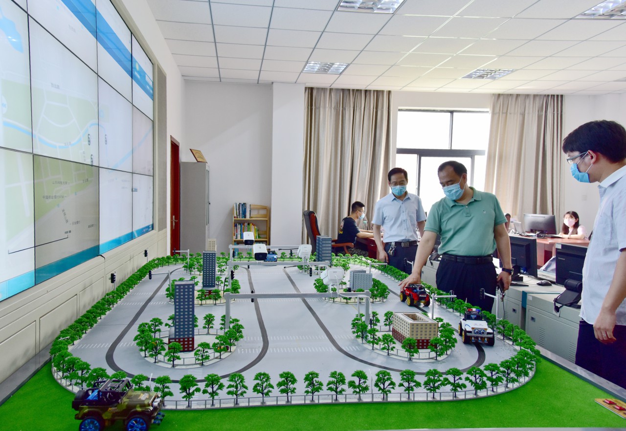 院长辛嵩代表学院向曾校长一行的到来表示热烈欢迎。他详细汇报了学院实验室安全防疫及建设等相关情况,并陪同实地检查了智能交通实验室、智能物流技术实验室、虚拟仿真实验室等。