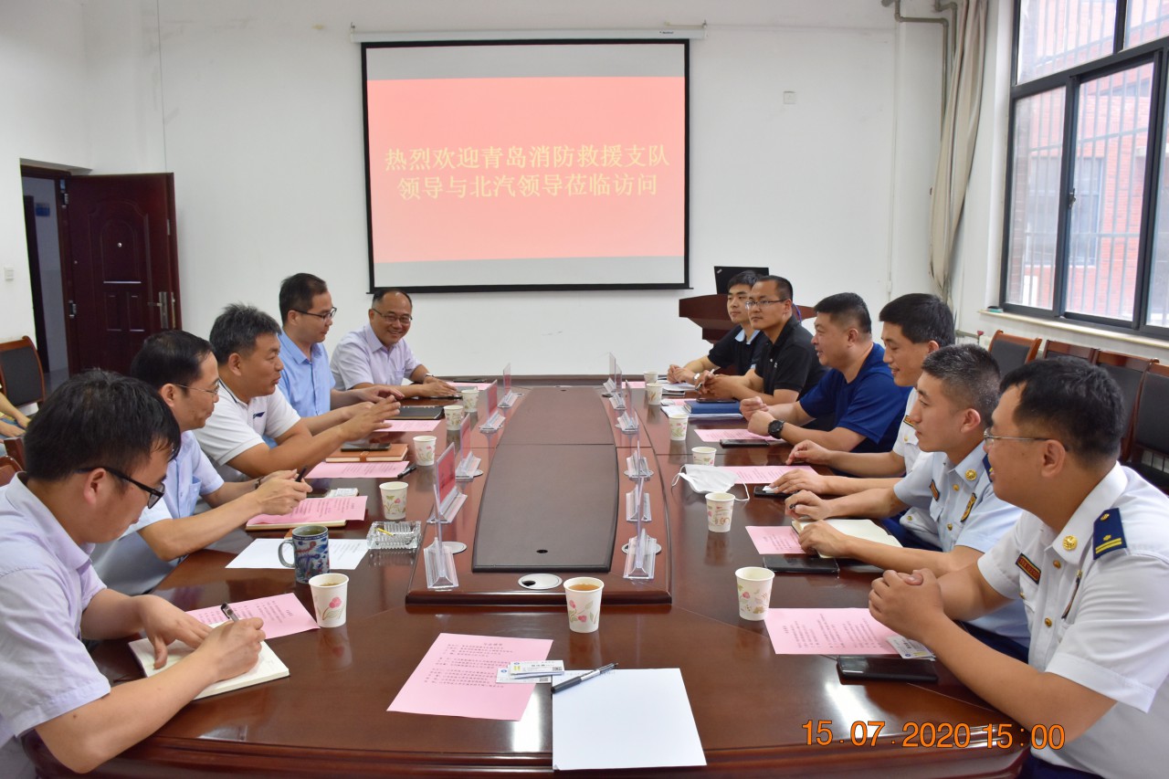 陈启元简要介绍了本次来校交流目的,主要是对新能源车的着火安全事故失控机理及消防安全解决方案等方面期许学院为其提供技术支持。他简要介绍了消防支队联合北汽新能源青岛产业基地建立新能源汽车消防安全实习实训基地项目相关情况及下一步双方合作的结合点。