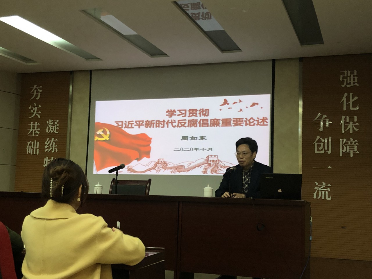 10月26日,纪委副书记周如东在J2-104为bv伟德国际体育官方网站第三期党员发展对象培训班授课。本次党课的主题是“学习贯彻习近平新时代反腐倡廉重要论述”。