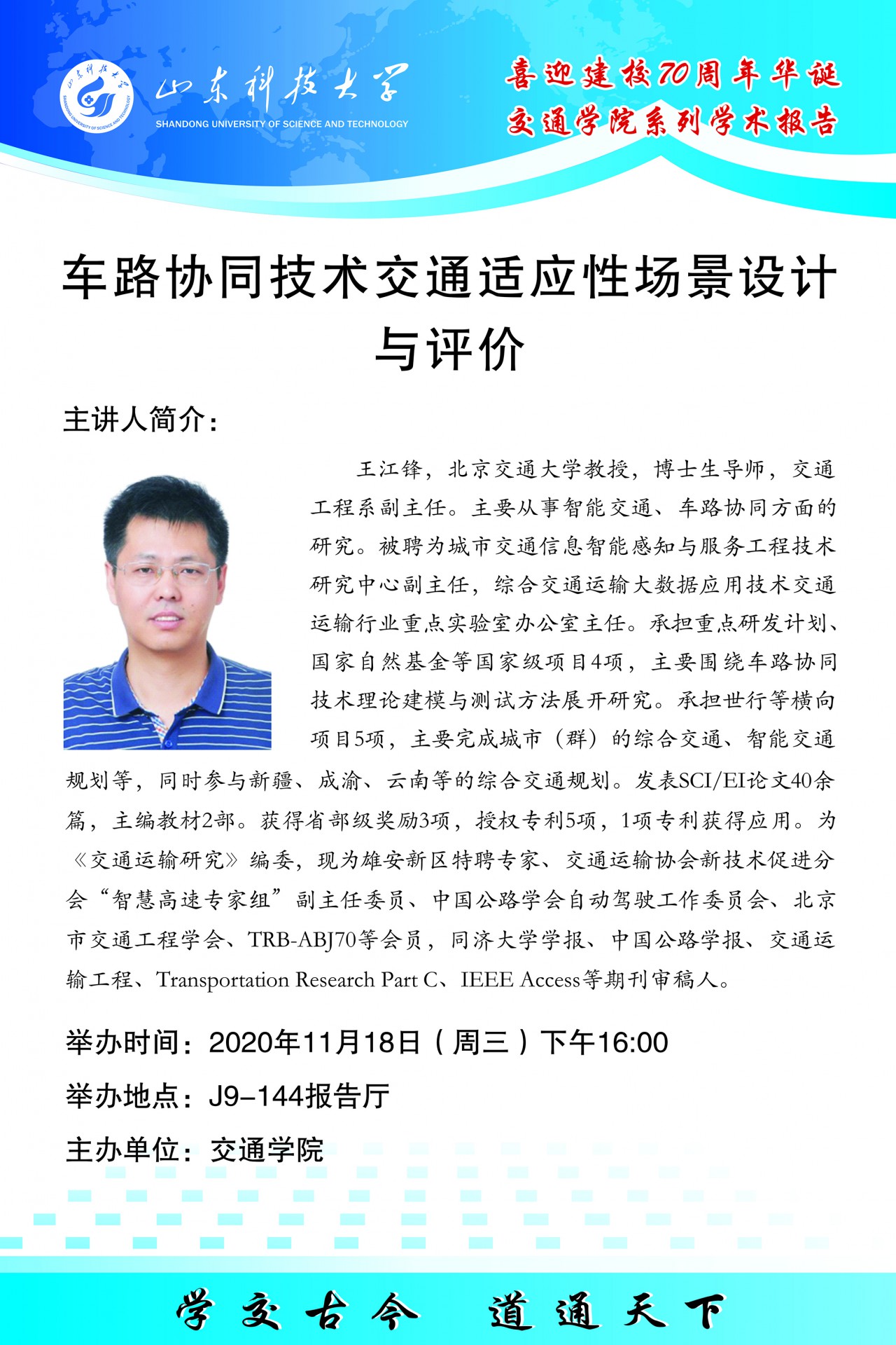 喜迎建校70周年华诞——bv伟德国际体育官方网站系列学术报告