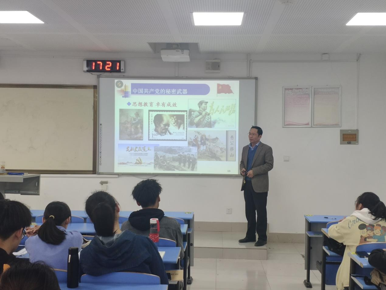随后,辛嵩向入党积极分子详细讲解了中国共产党百年奋斗历程,并结合自身学习经历,通过列举刘胡兰、董存瑞、张思德、钱学森等革命英雄事迹、革命战争时期中国共产党对待俘虏的方案和北平和平解放等故事,讲解中国共产党远大理想的精神实质和丰富内涵,介绍了中国共产党的秘密武器:远大理想,凝聚人心;知行合一,探索道路;思想教育,卓有成效;精神激励,永放光芒;人道主义,化敌为友。党课培训会结束后,入党积极分子纷纷表示,将进一步坚定理想信念,树立崇高理想,立报效祖国之志,做到知行合一,切实将爱国热情的转化为当前刻苦学习的实际行动中。