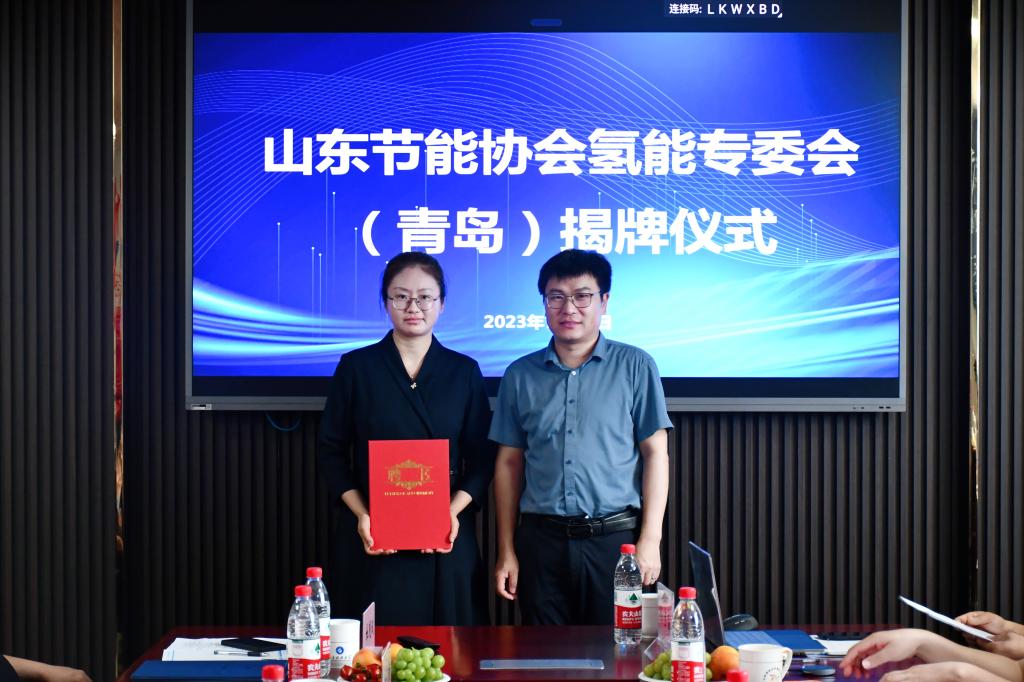 孙宝雷宣读了《关于同意设立山东节能协会氢能专业委员会(青岛)的批复》、《关于山东节能协会氢能专业委员会(青岛)新增负责单位的通知》。李巍、辛嵩、于蓬、尹智为氢能专业委员会(青岛)揭牌。辛嵩、于蓬、尹智为氢能专业委员会(青岛)负责人颁发聘书。