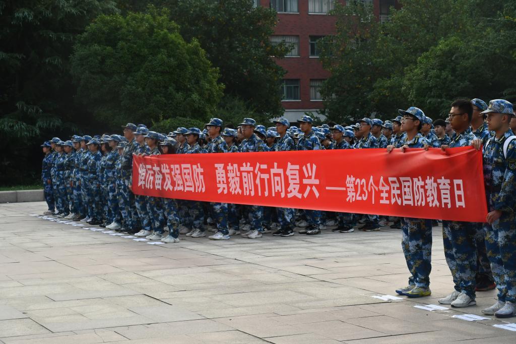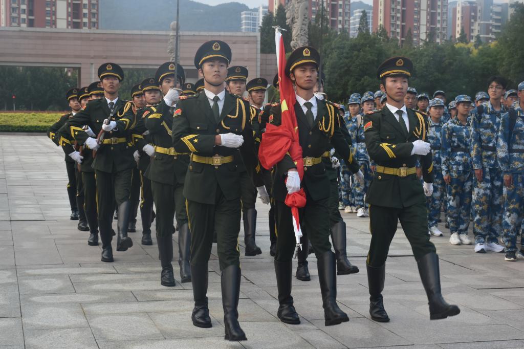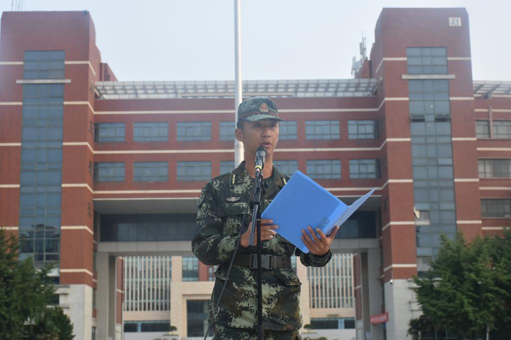 国旗护卫队的同学迈着整齐划一的步伐,护送着五星红旗正步走向升旗台。全体师生面问国旗肃立致礼。随着激昂的《义勇军进行曲》响起,师生们注视着五星红旗冉冉升起,在熠熠晨光中迎风飘扬。升旗仪式结束后,军训教官栾宗晓上台发言,他表示,军训作为一种特殊的教育形式,在磨练坚强意志、培养吃苦耐劳精神、培育集体主义精神、增强国防观念、提高政治觉悟、激发爱国热情、养成良好的学风和生活作风方面有着不可替代的作用。在全民国防教育日来临之际,他也给学生们提出三点期许:勿忘国耻、奋发图强;天下兴亡、匹夫有责;永怀爱国之心,身践强国之行,希望全体同学,用实际行动践行国防教育的宗旨,做到知国情、爱国家、敬人民、守纪律。